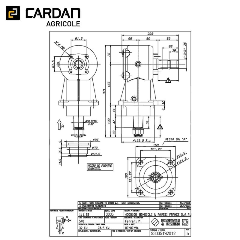 Boitier de gyrobroyeur S3035192012-BONDIOLI | S3035192012-BONDIOLI Référence S3035192012-BONDIOLI Disponible sous 48/72h CaractéristiquesEntrée : 1-3/8 Z6Sortie : ASA 8/16 Z12Sens de rotation : InverséRapport : 1:1,92Puissance à 540tr/min : 32CV - 23,5KW Descriptif produit Boitier de girobroyeur dont l'arbre d'entrée est en 1-3/8 6 cannelures. Le rapport est de 1:1,92 et le sens de rotation entre l'entrée et la sortie... En savoir plus Fabricant Réserver du stock × Vous souhaitez vous assurer de la disponibilité d’un produit ? Notre service de réservation de stock est fait pour vous ! Dès réception de votre demande, nous vous envoyons un tarif de réservation accompagné d’un devis à régler en ligne. Une fois le paiement validé, le stock vous est attribué et réservé pour votre commande.Livraison possible sous 24h. Ce service est payant et nécessite un compte pro. Si vous n’avez pas encore de compte, vous devrez en créer un pour finaliser votre demande et régler le devis de réservation. Connexion requise Connectez-vous ou créez un compte pour accéder à la réservation de stock Se connecter / Créer un compte Réserver du stock Télécharger les caractéristiques techniques Partagez ce produit Partagez ce produit 829,90 € TTC / pièce 691,58 € HT Comparer - + Ajouter au panier Sauvegarder ce produit dans ma liste Achat rapide Quantité minimale 1Options de livraison Besoin de conseils ? Rappel gratuit Contactez-nous 01 83 64 42 62 Nom / Prénom * Téléphone * Email * Message * Envoyer * Informations obligatoires Demander un devis Demande de devis × Vous devez être connecté pour demander un devis. Je suis un particulier Je suis un proDéja client ? Se connecter Créer mon compte Créer un compte Étape précédente SIRET Entreprise APE Aucune société pour ce siret L'adresse email de comptabilité est différente de l'adresse email de votre compte client ? Oui Non Email de la comptabilité : Civilité M. Mme Prénom * Nom* Email * Mot de passe * (Cinq caractères minimum) Date de naissance -1 2 3 4 5 6 7 8 9 10 11 12 13 14 15 16 17 18 19 20 21 22 23 24 25 26 27 28 29 30 31 -January February March April May June July August September October November December -2026 2025 2024 2023 2022 2021 2020 2019 2018 2017 2016 2015 2014 2013 2012 2011 2010 2009 2008 2007 2006 2005 2004 2003 2002 2001 2000 1999 1998 1997 1996 1995 1994 1993 1992 1991 1990 1989 1988 1987 1986 1985 1984 1983 1982 1981 1980 1979 1978 1977 1976 1975 1974 1973 1972 1971 1970 1969 1968 1967 1966 1965 1964 1963 1962 1961 1960 1959 1958 1957 1956 1955 1954 1953 1952 1951 1950 1949 1948 1947 1946 1945 1944 1943 1942 1941 1940 1939 1938 1937 1936 1935 1934 1933 1932 1931 1930 1929 1928 1927 1926 1925 1924 1923 1922 1921 1920 1919 1918 1917 1916 1915 1914 1913 1912 1911 1910 1909 1908 1907 1906 1905 1904 1903 1902 1901 1900 Inscrivez-vous à notre newsletter ! Recevez les offres spéciales de nos partenaires ! S'inscrire *Champ obligatoire Vous souhaitez obtenir un devis personnalisé pour ce produit ? Complétez le formulaire ci-dessous et nous vous recontacterons rapidement avec une offre adaptée à vos besoins.Devis gratuit et sans engagement. Quantité souhaitée * Message ou spécifications Envoyer ma demande de devis * Informations obligatoires Description Boitier de girobroyeur dont l'arbre d'entrée est en 1-3/8 6 cannelures. Le rapport est de 1:1,92 et le sens de rotation entre l'entrée et la sortie est inversé. Fiche technique MarqueBONDIOLIBoitier série3000Arbre d'entrée1-3/8 Z6Arbre de sortieASA 8/16 Z12Sens de rotationInverséRapport1:1,92Puissance à 540 tr/min de la machine entrainée32CV - 23,5KW