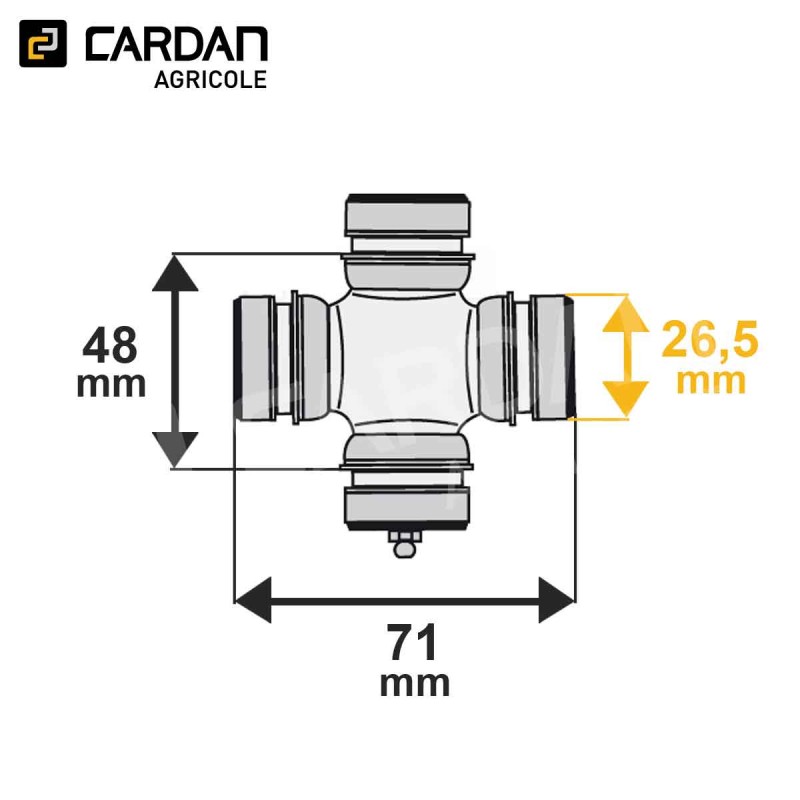 Croisillon avec circlips intérieur CRO047160 | CRO047160 Référence CRO047160 Disponible sous 24/48h Caractéristiques Diamètre du dé : 26,5 mmLongueur : 48/71 mmGraissage : En bout de dé Descriptif produit Croisillon de cardan à circlips intérieurs dont les cotes en mm sont 26,5x48/71. Il a un graisseur en bout de dé et est notamment monté sur du Mazd... En savoir plus Fabricant Réserver du stock × Vous souhaitez vous assurer de la disponibilité d’un produit ? Notre service de réservation de stock est fait pour vous ! Dès réception de votre demande, nous vous envoyons un tarif de réservation accompagné d’un devis à régler en ligne. Une fois le paiement validé, le stock vous est attribué et réservé pour votre commande.Livraison possible sous 24h. Ce service est payant et nécessite un compte pro. Si vous n’avez pas encore de compte, vous devrez en créer un pour finaliser votre demande et régler le devis de réservation. Connexion requise Connectez-vous ou créez un compte pour accéder à la réservation de stock Se connecter / Créer un compte Réserver du stock Télécharger les caractéristiques techniques Partagez ce produit Partagez ce produit 100,56 € TTC / pièce 83,80 € HT Comparer - + Ajouter au panier Sauvegarder ce produit dans ma liste Achat rapide Quantité minimale 1Options de livraison Besoin de conseils ? Rappel gratuit Contactez-nous 01 83 64 42 62 Nom / Prénom * Téléphone * Email * Message * Envoyer * Informations obligatoires Demander un devis Demande de devis × Vous devez être connecté pour demander un devis. Je suis un particulier Je suis un proDéja client ? Se connecter Créer mon compte Créer un compte Étape précédente SIRET Entreprise APE Aucune société pour ce siret L'adresse email de comptabilité est différente de l'adresse email de votre compte client ? Oui Non Email de la comptabilité : Civilité M. Mme Prénom * Nom* Email * Mot de passe * (Cinq caractères minimum) Date de naissance -1 2 3 4 5 6 7 8 9 10 11 12 13 14 15 16 17 18 19 20 21 22 23 24 25 26 27 28 29 30 31 -January February March April May June July August September October November December -2026 2025 2024 2023 2022 2021 2020 2019 2018 2017 2016 2015 2014 2013 2012 2011 2010 2009 2008 2007 2006 2005 2004 2003 2002 2001 2000 1999 1998 1997 1996 1995 1994 1993 1992 1991 1990 1989 1988 1987 1986 1985 1984 1983 1982 1981 1980 1979 1978 1977 1976 1975 1974 1973 1972 1971 1970 1969 1968 1967 1966 1965 1964 1963 1962 1961 1960 1959 1958 1957 1956 1955 1954 1953 1952 1951 1950 1949 1948 1947 1946 1945 1944 1943 1942 1941 1940 1939 1938 1937 1936 1935 1934 1933 1932 1931 1930 1929 1928 1927 1926 1925 1924 1923 1922 1921 1920 1919 1918 1917 1916 1915 1914 1913 1912 1911 1910 1909 1908 1907 1906 1905 1904 1903 1902 1901 1900 Inscrivez-vous à notre newsletter ! Recevez les offres spéciales de nos partenaires ! S'inscrire *Champ obligatoire Vous souhaitez obtenir un devis personnalisé pour ce produit ? Complétez le formulaire ci-dessous et nous vous recontacterons rapidement avec une offre adaptée à vos besoins.Devis gratuit et sans engagement. Quantité souhaitée * Message ou spécifications Envoyer ma demande de devis * Informations obligatoires Description Croisillon de cardan à circlips intérieurs dont les cotes en mm sont 26,5x48/71. Il a un graisseur en bout de dé et est notamment monté sur du Mazda.Les circlips sont fournis avec. Fiche technique Cote C71Diamètre de dé26,5Longueur de croisillon48MarqueGénériqueGraissageBout de déType de croisillonCirclips intérieurFigure7