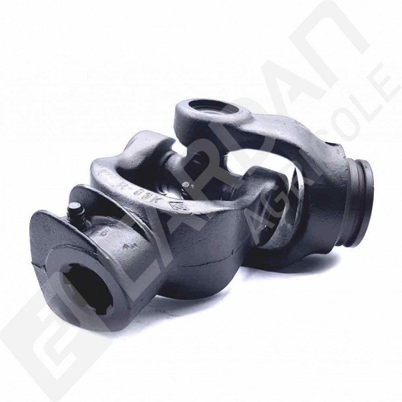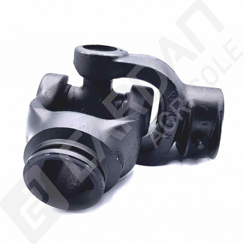 Joint de cardan standard complet de marque Magdalena, comprenant la machoire tube, le croisillon et la machoire outil ou tracteur. Cet ensemble se monte sur un tube triangle (trilobes) intérieur qui a une dimension de 45x5,5 mm. Son croisillon fait 35x106,5 mm et sa sortie est en 1-3/8 6 cannelures verrouillage avec un poussoir. La gorge qui permet de recevoir la bague du protecteur a quant à elle un diamètre en mm de 59.