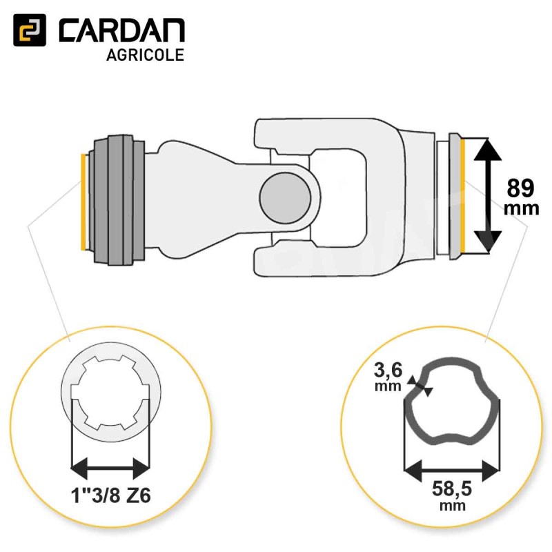 Joint de cardan Bondioli complet tube free rotation 58,5x3,6 - 1-3/8 Z6 | JFRESFTS6-BONDIOLI Référence JFRESFTS6-BONDIOLI Disponible sous 24/48h Caractéristiques Croisillon : 30,2x79,4 mmSortie : 1-3/8 Z6 à billesTube : Free rotation extérieur 58,5x3,6 mm Descriptif produit Joint de cardan standard complet de marque Bondioli, comprenant la machoire tube, le croisillon et la machoire outil ou tracteur. Cet ensemble se m... En savoir plus Fabricant Réserver du stock × Vous souhaitez vous assurer de la disponibilité d’un produit ? Notre service de réservation de stock est fait pour vous ! Dès réception de votre demande, nous vous envoyons un tarif de réservation accompagné d’un devis à régler en ligne. Une fois le paiement validé, le stock vous est attribué et réservé pour votre commande.Livraison possible sous 24h. Ce service est payant et nécessite un compte pro. Si vous n’avez pas encore de compte, vous devrez en créer un pour finaliser votre demande et régler le devis de réservation. Connexion requise Connectez-vous ou créez un compte pour accéder à la réservation de stock Se connecter / Créer un compte Réserver du stock Télécharger les caractéristiques techniques Partagez ce produit Partagez ce produit 260,63 € TTC / pièce 217,20 € HT Comparer - + Ajouter au panier Sauvegarder ce produit dans ma liste Achat rapide Quantité minimale 1Options de livraison Besoin de conseils ? Rappel gratuit Contactez-nous 01 83 64 42 62 Nom / Prénom * Téléphone * Email * Message * Envoyer * Informations obligatoires Demander un devis Demande de devis × Vous devez être connecté pour demander un devis. Je suis un particulier Je suis un proDéja client ? Se connecter Créer mon compte Créer un compte Étape précédente SIRET Entreprise APE Aucune société pour ce siret L'adresse email de comptabilité est différente de l'adresse email de votre compte client ? Oui Non Email de la comptabilité : Civilité M. Mme Prénom * Nom* Email * Mot de passe * (Cinq caractères minimum) Date de naissance -1 2 3 4 5 6 7 8 9 10 11 12 13 14 15 16 17 18 19 20 21 22 23 24 25 26 27 28 29 30 31 -January February March April May June July August September October November December -2026 2025 2024 2023 2022 2021 2020 2019 2018 2017 2016 2015 2014 2013 2012 2011 2010 2009 2008 2007 2006 2005 2004 2003 2002 2001 2000 1999 1998 1997 1996 1995 1994 1993 1992 1991 1990 1989 1988 1987 1986 1985 1984 1983 1982 1981 1980 1979 1978 1977 1976 1975 1974 1973 1972 1971 1970 1969 1968 1967 1966 1965 1964 1963 1962 1961 1960 1959 1958 1957 1956 1955 1954 1953 1952 1951 1950 1949 1948 1947 1946 1945 1944 1943 1942 1941 1940 1939 1938 1937 1936 1935 1934 1933 1932 1931 1930 1929 1928 1927 1926 1925 1924 1923 1922 1921 1920 1919 1918 1917 1916 1915 1914 1913 1912 1911 1910 1909 1908 1907 1906 1905 1904 1903 1902 1901 1900 Inscrivez-vous à notre newsletter ! Recevez les offres spéciales de nos partenaires ! S'inscrire *Champ obligatoire Vous souhaitez obtenir un devis personnalisé pour ce produit ? Complétez le formulaire ci-dessous et nous vous recontacterons rapidement avec une offre adaptée à vos besoins.Devis gratuit et sans engagement. Quantité souhaitée * Message ou spécifications Envoyer ma demande de devis * Informations obligatoires Description Joint de cardan standard complet de marque Bondioli, comprenant la machoire tube, le croisillon et la machoire outil ou tracteur. Cet ensemble se monte sur un tube free rotation extérieur qui a une dimension de 58,5x3,6 mm. Son croisillon fait 30,2x79,4 mm et sa sortie est en 1-3/8 6 cannelures verrouillage à billes dont la bague est en plastique. La gorge qui permet de recevoir la bague du protecteur a quant à elle un diamètre en mm de 89. Fiche technique Sortie1"3/8 Z6Dimension de tube58,5x3,6Croisillon30,2x79,4Profil de tubeFree rotation extérieurMarqueBONDIOLIRéférence d'origineCS6GC083007Diamètre de gorge89Type de joint de cardanStandardVerrouillageA billes