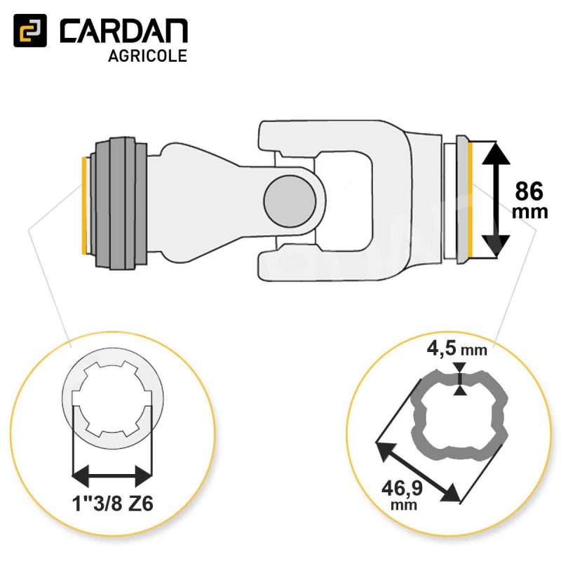 Joint de cardan Bondioli complet tube quadrilobes 46,9x4,5 - 1-3/8 Z6 | JQISFTS6-BONDIOLI Référence JQISFTS6-BONDIOLI Disponible sous 24/48h Caractéristiques Croisillon : 30,2x79,4 mmSortie : 1-3/8 Z6 à billesTube : Quadrilobes intérieur 46,9x4,5 mm Descriptif produit Joint de cardan standard complet de marque Bondioli, comprenant la machoire tube, le croisillon et la machoire outil ou tracteur. Cet ensemble se m... En savoir plus Fabricant Réserver du stock × Vous souhaitez vous assurer de la disponibilité d’un produit ? Notre service de réservation de stock est fait pour vous ! Dès réception de votre demande, nous vous envoyons un tarif de réservation accompagné d’un devis à régler en ligne. Une fois le paiement validé, le stock vous est attribué et réservé pour votre commande.Livraison possible sous 24h. Ce service est payant et nécessite un compte pro. Si vous n’avez pas encore de compte, vous devrez en créer un pour finaliser votre demande et régler le devis de réservation. Connexion requise Connectez-vous ou créez un compte pour accéder à la réservation de stock Se connecter / Créer un compte Réserver du stock Télécharger les caractéristiques techniques Partagez ce produit Partagez ce produit 220,62 € TTC / pièce 183,85 € HT Comparer - + Ajouter au panier Sauvegarder ce produit dans ma liste Achat rapide Quantité minimale 1Options de livraison Besoin de conseils ? Rappel gratuit Contactez-nous 01 83 64 42 62 Nom / Prénom * Téléphone * Email * Message * Envoyer * Informations obligatoires Demander un devis Demande de devis × Vous devez être connecté pour demander un devis. Je suis un particulier Je suis un proDéja client ? Se connecter Créer mon compte Créer un compte Étape précédente SIRET Entreprise APE Aucune société pour ce siret L'adresse email de comptabilité est différente de l'adresse email de votre compte client ? Oui Non Email de la comptabilité : Civilité M. Mme Prénom * Nom* Email * Mot de passe * (Cinq caractères minimum) Date de naissance -1 2 3 4 5 6 7 8 9 10 11 12 13 14 15 16 17 18 19 20 21 22 23 24 25 26 27 28 29 30 31 -January February March April May June July August September October November December -2026 2025 2024 2023 2022 2021 2020 2019 2018 2017 2016 2015 2014 2013 2012 2011 2010 2009 2008 2007 2006 2005 2004 2003 2002 2001 2000 1999 1998 1997 1996 1995 1994 1993 1992 1991 1990 1989 1988 1987 1986 1985 1984 1983 1982 1981 1980 1979 1978 1977 1976 1975 1974 1973 1972 1971 1970 1969 1968 1967 1966 1965 1964 1963 1962 1961 1960 1959 1958 1957 1956 1955 1954 1953 1952 1951 1950 1949 1948 1947 1946 1945 1944 1943 1942 1941 1940 1939 1938 1937 1936 1935 1934 1933 1932 1931 1930 1929 1928 1927 1926 1925 1924 1923 1922 1921 1920 1919 1918 1917 1916 1915 1914 1913 1912 1911 1910 1909 1908 1907 1906 1905 1904 1903 1902 1901 1900 Inscrivez-vous à notre newsletter ! Recevez les offres spéciales de nos partenaires ! S'inscrire *Champ obligatoire Vous souhaitez obtenir un devis personnalisé pour ce produit ? Complétez le formulaire ci-dessous et nous vous recontacterons rapidement avec une offre adaptée à vos besoins.Devis gratuit et sans engagement. Quantité souhaitée * Message ou spécifications Envoyer ma demande de devis * Informations obligatoires Description Joint de cardan standard complet de marque Bondioli, comprenant la machoire tube, le croisillon et la machoire outil ou tracteur. Cet ensemble se monte sur un tube quadrilobes intérieur qui a une dimension de 46,9x4,5 mm. Son croisillon fait 30,2x79,4 mm et sa sortie est en 1-3/8 6 cannelures verrouillage à billes dont la bague est en plastique. La gorge qui permet de recevoir la bague du protecteur a quant à elle un diamètre en mm de 86. Fiche technique Sortie1"3/8 Z6Dimension de tube46,9x4,5Croisillon30,2x79,4Profil de tubeQuadrilobes intérieurMarqueBONDIOLIRéférence d'origineCS6GC050007Diamètre de gorge86Type de joint de cardanStandardVerrouillageA billes