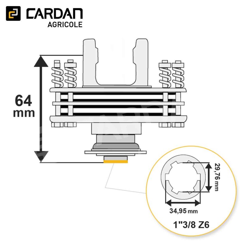 Limiteur à frictions Walterscheid K92/4 56.218.16 / 1325110 | LF05/4150VB/4-WALTERSCHEID Référence LF05/4150VB/4-WALTERSCHEID Afficher toutes les images Disponible sous 24/48h Caractéristiques Croisillon : 27x74,5 mmSortie : 1-3/8 Z6 à collier avec ressortCouple Max : 1350 NmCorrespondance origine : 56.218.16 / 1325110 Descriptif produit Limiteur à frictions également appelé embrayage type K92/4 d'origine Walterscheid. Il se monte sur un croisillon dont les dimensions sont 27x74,5 m... En savoir plus Fabricant Réserver du stock × Vous souhaitez vous assurer de la disponibilité d’un produit ? Notre service de réservation de stock est fait pour vous ! Dès réception de votre demande, nous vous envoyons un tarif de réservation accompagné d’un devis à régler en ligne. Une fois le paiement validé, le stock vous est attribué et réservé pour votre commande.Livraison possible sous 24h. Ce service est payant et nécessite un compte pro. Si vous n’avez pas encore de compte, vous devrez en créer un pour finaliser votre demande et régler le devis de réservation. Connexion requise Connectez-vous ou créez un compte pour accéder à la réservation de stock Se connecter / Créer un compte Réserver du stock Télécharger les caractéristiques techniques Partagez ce produit Partagez ce produit 736,03 € TTC / pièce 613,36 € HT Comparer - + Ajouter au panier Sauvegarder ce produit dans ma liste Achat rapide Quantité minimale 1Options de livraison Besoin de conseils ? Rappel gratuit Contactez-nous 01 83 64 42 62 Nom / Prénom * Téléphone * Email * Message * Envoyer * Informations obligatoires Demander un devis Demande de devis × Vous devez être connecté pour demander un devis. Je suis un particulier Je suis un proDéja client ? Se connecter Créer mon compte Créer un compte Étape précédente SIRET Entreprise APE Aucune société pour ce siret L'adresse email de comptabilité est différente de l'adresse email de votre compte client ? Oui Non Email de la comptabilité : Civilité M. Mme Prénom * Nom* Email * Mot de passe * (Cinq caractères minimum) Date de naissance -1 2 3 4 5 6 7 8 9 10 11 12 13 14 15 16 17 18 19 20 21 22 23 24 25 26 27 28 29 30 31 -January February March April May June July August September October November December -2025 2024 2023 2022 2021 2020 2019 2018 2017 2016 2015 2014 2013 2012 2011 2010 2009 2008 2007 2006 2005 2004 2003 2002 2001 2000 1999 1998 1997 1996 1995 1994 1993 1992 1991 1990 1989 1988 1987 1986 1985 1984 1983 1982 1981 1980 1979 1978 1977 1976 1975 1974 1973 1972 1971 1970 1969 1968 1967 1966 1965 1964 1963 1962 1961 1960 1959 1958 1957 1956 1955 1954 1953 1952 1951 1950 1949 1948 1947 1946 1945 1944 1943 1942 1941 1940 1939 1938 1937 1936 1935 1934 1933 1932 1931 1930 1929 1928 1927 1926 1925 1924 1923 1922 1921 1920 1919 1918 1917 1916 1915 1914 1913 1912 1911 1910 1909 1908 1907 1906 1905 1904 1903 1902 1901 1900 Inscrivez-vous à notre newsletter ! Recevez les offres spéciales de nos partenaires ! S'inscrire *Champ obligatoire Vous souhaitez obtenir un devis personnalisé pour ce produit ? Complétez le formulaire ci-dessous et nous vous recontacterons rapidement avec une offre adaptée à vos besoins.Devis gratuit et sans engagement. Quantité souhaitée * Message ou spécifications Envoyer ma demande de devis * Informations obligatoires Description Limiteur à frictions également appelé embrayage type K92/4 d'origine Walterscheid. Il se monte sur un croisillon dont les dimensions sont 27x74,5 mm et sa sortie est en 1-3/8 6 cannelures verrouillage à collier avec ressort. Il est taré à 1350 Nm.Ce type de limiteur permet le glissement des disques pour limiter les surcharges de travail ou les pics de couple généré au démarrage d'une machine ayant une forte inertie. Fiche technique Sortie1"3/8 Z6Croisillon27x74,5MarqueWALTERSCHEIDCouple maximum (Nm)1350Référence d'origine56.218.16 / 1325110VerrouillageCollier avec ressortSérie de limiteurK92/4Type de limiteurA frictionsLongueur du corps64Diamètre des disques de frictions4 x 150