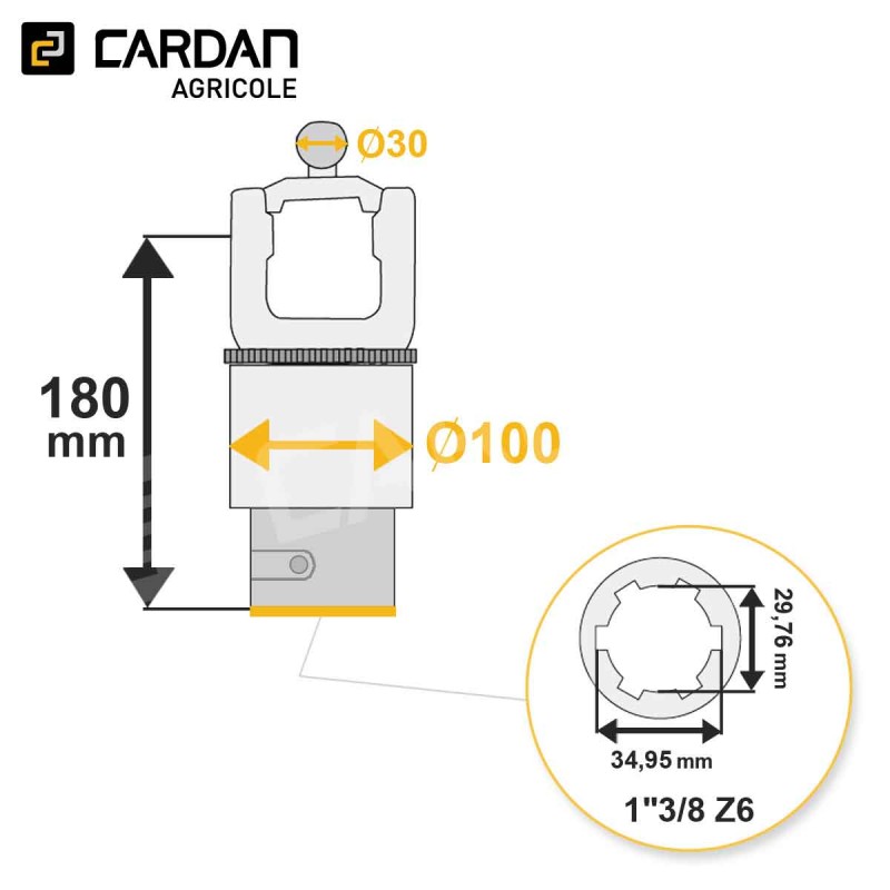 Roue libre grand angle Magdalena 36x89 - 32x106/110 - 1-3/8 Z6 - Droite | HRLC31-MAGDALENA Référence HRLC31-MAGDALENA Caractéristiques Croisillon : 36x89 - 32x106/110 mmSortie : 1"3/8 Z6 par poussoirRotation : DroiteCorrespondance origine : 56.104.40 Descriptif produit Roue libre Magdalena. Elle se monte sur un croisillon dont les dimensions sont 36x89 - 32x106/110 mm et sa sortie est en 1-3/8 6 cannelures verroui... En savoir plus Fabricant Télécharger les caractéristiques techniques Partagez ce produit Partagez ce produit 294,81 € TTC / pièce 245,67 € HT Ajouter au comparateur Disponible sous 2/3 semaines - + Ajouter au panier Sauvegarder ce produit dans ma liste Achat rapide Quantité minimale 1Options de livraison Besoin de conseils ? Rappel gratuit Contactez-nous 01 83 64 42 62 Nom / Prénom * Téléphone * Email * Message * Envoyer * Informations obligatoires Description Roue libre Magdalena. Elle se monte sur un croisillon dont les dimensions sont 36x89 - 32x106/110 mm et sa sortie est en 1-3/8 6 cannelures verrouillage par poussoir. Elle a un couple maximum de 3000 Nm et une rotation à droite.Ce type de sécurité permet d'éliminer les pics de couple générés par l'intertie de la machine (rotor, volants...).ATTENTION la roue libre en rotation à droite est faite pour être montée sur une prise de force arrière de tracteur. Fiche technique Sortie 1"3/8 Z6 Croisillon 36x89 - 32x106/110 Longueur (mm) 180 D - Diamètre extérieur (mm) 100 Marque MAGDALENA Couple maximum (Nm) 3000 Sens de rotation Droite Verrouillage Poussoir Type de limiteur Roue libre homocinétique Diamètre de la boule 30Questions & RéponsesAucune question n'a encore été posée sur ce produit. Vous avez une question ? Posez-la aux autres acheteurs et connaisseurs de ce produit, ils pourront répondre à vos questions ! Poser votre question
