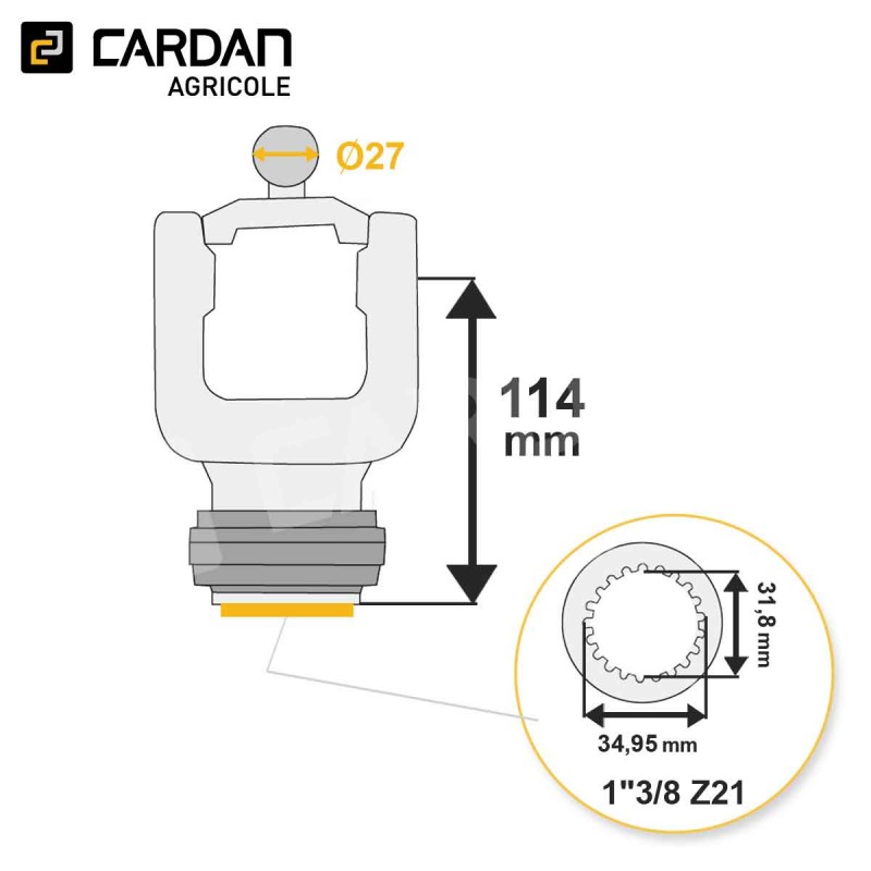 Machoire de grand angle Magdalena - 32x76 - 27x94/98 - 1-3/8 Z21 | HMA308VB-MAGDALENA Référence HMA308VB-MAGDALENA Disponible sous 2/3 semaines Caractéristiques Croisillon : 32x76 - 27x94/98 mmSortie : 1-3/8 21 canneluresVerrouillage : A billesCorrespondance origine : 35.83.12 Descriptif produit Machoire d'extrémité de grand angle Magdalena pouvant aller côté tracteur ou côté machine. Elle se monte sur un croisillon dont les dimensions sont... En savoir plus Fabricant Réserver du stock × Vous souhaitez vous assurer de la disponibilité d’un produit ? Notre service de réservation de stock est fait pour vous ! Dès réception de votre demande, nous vous envoyons un tarif de réservation accompagné d’un devis à régler en ligne. Une fois le paiement validé, le stock vous est attribué et réservé pour votre commande.Livraison possible sous 24h. Ce service est payant et nécessite un compte pro. Si vous n’avez pas encore de compte, vous devrez en créer un pour finaliser votre demande et régler le devis de réservation. Connexion requise Connectez-vous ou créez un compte pour accéder à la réservation de stock Se connecter / Créer un compte Réserver du stock Télécharger les caractéristiques techniques Partagez ce produit Partagez ce produit 164,98 € TTC / pièce 137,48 € HT Comparer - + Ajouter au panier Sauvegarder ce produit dans ma liste Achat rapide Quantité minimale 1Options de livraison Besoin de conseils ? Rappel gratuit Contactez-nous 01 83 64 42 62 Nom / Prénom * Téléphone * Email * Message * Envoyer * Informations obligatoires Demander un devis Demande de devis × Vous devez être connecté pour demander un devis. Je suis un particulier Je suis un proDéja client ? Se connecter Créer mon compte Créer un compte Étape précédente SIRET Entreprise APE Aucune société pour ce siret L'adresse email de comptabilité est différente de l'adresse email de votre compte client ? Oui Non Email de la comptabilité : Civilité M. Mme Prénom * Nom* Email * Mot de passe * (Cinq caractères minimum) Date de naissance -1 2 3 4 5 6 7 8 9 10 11 12 13 14 15 16 17 18 19 20 21 22 23 24 25 26 27 28 29 30 31 -January February March April May June July August September October November December -2025 2024 2023 2022 2021 2020 2019 2018 2017 2016 2015 2014 2013 2012 2011 2010 2009 2008 2007 2006 2005 2004 2003 2002 2001 2000 1999 1998 1997 1996 1995 1994 1993 1992 1991 1990 1989 1988 1987 1986 1985 1984 1983 1982 1981 1980 1979 1978 1977 1976 1975 1974 1973 1972 1971 1970 1969 1968 1967 1966 1965 1964 1963 1962 1961 1960 1959 1958 1957 1956 1955 1954 1953 1952 1951 1950 1949 1948 1947 1946 1945 1944 1943 1942 1941 1940 1939 1938 1937 1936 1935 1934 1933 1932 1931 1930 1929 1928 1927 1926 1925 1924 1923 1922 1921 1920 1919 1918 1917 1916 1915 1914 1913 1912 1911 1910 1909 1908 1907 1906 1905 1904 1903 1902 1901 1900 Inscrivez-vous à notre newsletter ! Recevez les offres spéciales de nos partenaires ! S'inscrire *Champ obligatoire Vous souhaitez obtenir un devis personnalisé pour ce produit ? Complétez le formulaire ci-dessous et nous vous recontacterons rapidement avec une offre adaptée à vos besoins.Devis gratuit et sans engagement. Quantité souhaitée * Message ou spécifications Envoyer ma demande de devis * Informations obligatoires Description Machoire d'extrémité de grand angle Magdalena pouvant aller côté tracteur ou côté machine. Elle se monte sur un croisillon dont les dimensions sont 32x76 - 27x94/98 mm et sa sortie est en 1-3/8 21 cannelures verrouillage à billes avec une bague plastique. Fiche technique Sortie1"3/8 Z21Croisillon32x76 - 27x94/98Longueur (mm)114MarqueMAGDALENARéférence d'origine35.83.12Type de machoireMachoire d'extrémité automatique homocinétiqueVerrouillageA billesDiamètre de la boule27