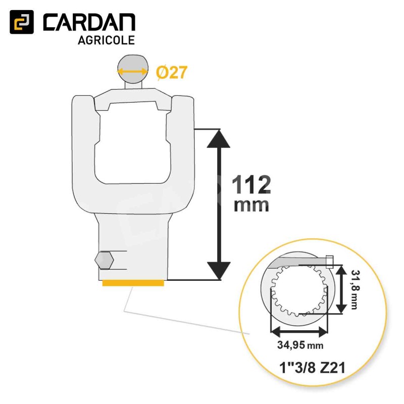 Machoire grand angle Walterscheid 35.10.832 (1195034) | HMA308BC-WALTERSCHEID Référence HMA308BC-WALTERSCHEID Afficher toutes les images Caractéristiques Croisillon : 32x76 - 27x94/98 mmSortie : 1-3/8 21 canneluresVerrouillage : Boulon coniqueCorrespondance origine : 35.10.832 / 1195034 Descriptif produit Machoire d'extrémité de grand angle d'origine Walterscheid 35.10.832 / 1195034 pouvant aller côté tracteur ou côté machine. Elle se monte sur un cr... En savoir plus Fabricant Télécharger les caractéristiques techniques Partagez ce produit Partagez ce produit 642,64 € TTC / pièce 535,54 € HT Disponible sous 48/72h - + Ajouter au panier Sauvegarder ce produit dans ma liste Achat rapide Quantité minimale 1Options de livraison Besoin de conseils ? Rappel gratuit Contactez-nous 01 83 64 42 62 Nom / Prénom * Téléphone * Email * Message * Envoyer * Informations obligatoires Demander un devis Demande de devis × Vous devez être connecté pour demander un devis. Je suis un particulier Je suis un proDéja client ? Se connecter Créer mon compte Créer un compte Étape précédente SIRET Entreprise APE Aucune société pour ce siret L'adresse email de comptabilité est différente de l'adresse email de votre compte client ? Oui Non Email de la comptabilité : Civilité M. Mme Prénom * Nom* Email * Mot de passe * (Cinq caractères minimum) Date de naissance -1 2 3 4 5 6 7 8 9 10 11 12 13 14 15 16 17 18 19 20 21 22 23 24 25 26 27 28 29 30 31 -January February March April May June July August September October November December -2025 2024 2023 2022 2021 2020 2019 2018 2017 2016 2015 2014 2013 2012 2011 2010 2009 2008 2007 2006 2005 2004 2003 2002 2001 2000 1999 1998 1997 1996 1995 1994 1993 1992 1991 1990 1989 1988 1987 1986 1985 1984 1983 1982 1981 1980 1979 1978 1977 1976 1975 1974 1973 1972 1971 1970 1969 1968 1967 1966 1965 1964 1963 1962 1961 1960 1959 1958 1957 1956 1955 1954 1953 1952 1951 1950 1949 1948 1947 1946 1945 1944 1943 1942 1941 1940 1939 1938 1937 1936 1935 1934 1933 1932 1931 1930 1929 1928 1927 1926 1925 1924 1923 1922 1921 1920 1919 1918 1917 1916 1915 1914 1913 1912 1911 1910 1909 1908 1907 1906 1905 1904 1903 1902 1901 1900 Inscrivez-vous à notre newsletter ! Recevez les offres spéciales de nos partenaires ! S'inscrire *Champ obligatoire Vous souhaitez obtenir un devis personnalisé pour ce produit ? Complétez le formulaire ci-dessous et nous vous recontacterons rapidement avec une offre adaptée à vos besoins.Devis gratuit et sans engagement. Quantité souhaitée * Message ou spécifications Envoyer ma demande de devis * Informations obligatoires Description Machoire d'extrémité de grand angle d'origine Walterscheid 35.10.832 / 1195034 pouvant aller côté tracteur ou côté machine. Elle se monte sur un croisillon dont les dimensions sont 32x76 - 27x94/98 mm et sa sortie est en 1-3/8 21 cannelures verrouillage avec un boulon conique. Fiche technique Sortie 1"3/8 Z21 Croisillon 32x76 - 27x94/98 Longueur (mm) 112 Marque WALTERSCHEID Référence d'origine 35.10.832 / 1195034 Type de machoire Machoire d'extrémité automatique homocinétique Verrouillage Boulon conique Diamètre de la boule 27