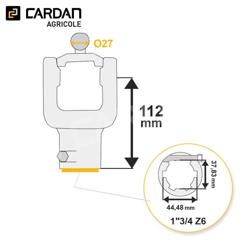Machoire grand angle Walterscheid 35.18.830 (1195035) | HMA309BC-WALTERSCHEID Référence HMA309BC-WALTERSCHEID Afficher toutes les images Disponible sous 24/48h Caractéristiques Croisillon : 32x76 - 27x94/98 mmSortie : 1-3/4 6 canneluresVerrouillage : Boulon coniqueCorrespondance origine : 35.18.830 / 1195035 Descriptif produit Machoire d'extrémité de grand angle d'origine Walterscheid 35.18.830 / 1195035 pouvant aller côté tracteur ou côté machine. Elle se monte sur un cr... En savoir plus Fabricant Réserver du stock × Vous souhaitez vous assurer de la disponibilité d’un produit ? Notre service de réservation de stock est fait pour vous ! Dès réception de votre demande, nous vous envoyons un tarif de réservation accompagné d’un devis à régler en ligne. Une fois le paiement validé, le stock vous est attribué et réservé pour votre commande.Livraison possible sous 24h. Ce service est payant et nécessite un compte pro. Si vous n’avez pas encore de compte, vous devrez en créer un pour finaliser votre demande et régler le devis de réservation. Connexion requise Connectez-vous ou créez un compte pour accéder à la réservation de stock Se connecter / Créer un compte Réserver du stock Télécharger les caractéristiques techniques Partagez ce produit Partagez ce produit 532,29 € TTC / pièce 443,58 € HT Comparer - + Ajouter au panier Sauvegarder ce produit dans ma liste Achat rapide Quantité minimale 1Options de livraison Besoin de conseils ? Rappel gratuit Contactez-nous 01 83 64 42 62 Nom / Prénom * Téléphone * Email * Message * Envoyer * Informations obligatoires Demander un devis Demande de devis × Vous devez être connecté pour demander un devis. Je suis un particulier Je suis un proDéja client ? Se connecter Créer mon compte Créer un compte Étape précédente SIRET Entreprise APE Aucune société pour ce siret L'adresse email de comptabilité est différente de l'adresse email de votre compte client ? Oui Non Email de la comptabilité : Civilité M. Mme Prénom * Nom* Email * Mot de passe * (Cinq caractères minimum) Date de naissance -1 2 3 4 5 6 7 8 9 10 11 12 13 14 15 16 17 18 19 20 21 22 23 24 25 26 27 28 29 30 31 -January February March April May June July August September October November December -2026 2025 2024 2023 2022 2021 2020 2019 2018 2017 2016 2015 2014 2013 2012 2011 2010 2009 2008 2007 2006 2005 2004 2003 2002 2001 2000 1999 1998 1997 1996 1995 1994 1993 1992 1991 1990 1989 1988 1987 1986 1985 1984 1983 1982 1981 1980 1979 1978 1977 1976 1975 1974 1973 1972 1971 1970 1969 1968 1967 1966 1965 1964 1963 1962 1961 1960 1959 1958 1957 1956 1955 1954 1953 1952 1951 1950 1949 1948 1947 1946 1945 1944 1943 1942 1941 1940 1939 1938 1937 1936 1935 1934 1933 1932 1931 1930 1929 1928 1927 1926 1925 1924 1923 1922 1921 1920 1919 1918 1917 1916 1915 1914 1913 1912 1911 1910 1909 1908 1907 1906 1905 1904 1903 1902 1901 1900 Inscrivez-vous à notre newsletter ! Recevez les offres spéciales de nos partenaires ! S'inscrire *Champ obligatoire Vous souhaitez obtenir un devis personnalisé pour ce produit ? Complétez le formulaire ci-dessous et nous vous recontacterons rapidement avec une offre adaptée à vos besoins.Devis gratuit et sans engagement. Quantité souhaitée * Message ou spécifications Envoyer ma demande de devis * Informations obligatoires Description Machoire d'extrémité de grand angle d'origine Walterscheid 35.18.830 / 1195035 pouvant aller côté tracteur ou côté machine. Elle se monte sur un croisillon dont les dimensions sont 32x76 - 27x94/98 mm et sa sortie est en 1-3/4 6 cannelures verrouillage avec un boulon conique. Fiche technique Sortie1"3/4 Z6Croisillon32x76 - 27x94/98Longueur (mm)112MarqueWALTERSCHEIDRéférence d'origine35.18.830 / 1195035Type de machoireMachoire d'extrémité automatique homocinétiqueVerrouillageBoulon coniqueDiamètre de la boule27