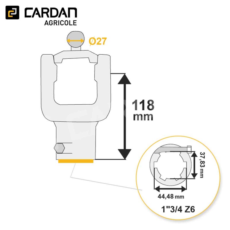 Machoire grand angle Walterscheid 35.18.330M (1137025) | HMA309BC/PD-WALTERSCHEID Référence HMA309BC/PD-WALTERSCHEID Afficher toutes les images Disponible sous 24/48h Caractéristiques Croisillon : 32x76 - 27x94/98 mmSortie : 1-3/4 6 canneluresVerrouillage : Boulon coniqueCorrespondance origine : 35.18.330M / 1137025 Descriptif produit Machoire d'extrémité de grand angle d'origine Walterscheid 35.18.330M / 1137025 pouvant aller côté tracteur ou côté machine. Elle se monte sur un c... En savoir plus Fabricant Réserver du stock × Vous souhaitez vous assurer de la disponibilité d’un produit ? Notre service de réservation de stock est fait pour vous ! Dès réception de votre demande, nous vous envoyons un tarif de réservation accompagné d’un devis à régler en ligne. Une fois le paiement validé, le stock vous est attribué et réservé pour votre commande.Livraison possible sous 24h. Ce service est payant et nécessite un compte pro. Si vous n’avez pas encore de compte, vous devrez en créer un pour finaliser votre demande et régler le devis de réservation. Connexion requise Connectez-vous ou créez un compte pour accéder à la réservation de stock Se connecter / Créer un compte Réserver du stock Télécharger les caractéristiques techniques Partagez ce produit Partagez ce produit 532,29 € TTC / pièce 443,58 € HT Comparer - + Ajouter au panier Sauvegarder ce produit dans ma liste Achat rapide Quantité minimale 1Options de livraison Besoin de conseils ? Rappel gratuit Contactez-nous 01 83 64 42 62 Nom / Prénom * Téléphone * Email * Message * Envoyer * Informations obligatoires Demander un devis Demande de devis × Vous devez être connecté pour demander un devis. Je suis un particulier Je suis un proDéja client ? Se connecter Créer mon compte Créer un compte Étape précédente SIRET Entreprise APE Aucune société pour ce siret L'adresse email de comptabilité est différente de l'adresse email de votre compte client ? Oui Non Email de la comptabilité : Civilité M. Mme Prénom * Nom* Email * Mot de passe * (Cinq caractères minimum) Date de naissance -1 2 3 4 5 6 7 8 9 10 11 12 13 14 15 16 17 18 19 20 21 22 23 24 25 26 27 28 29 30 31 -January February March April May June July August September October November December -2026 2025 2024 2023 2022 2021 2020 2019 2018 2017 2016 2015 2014 2013 2012 2011 2010 2009 2008 2007 2006 2005 2004 2003 2002 2001 2000 1999 1998 1997 1996 1995 1994 1993 1992 1991 1990 1989 1988 1987 1986 1985 1984 1983 1982 1981 1980 1979 1978 1977 1976 1975 1974 1973 1972 1971 1970 1969 1968 1967 1966 1965 1964 1963 1962 1961 1960 1959 1958 1957 1956 1955 1954 1953 1952 1951 1950 1949 1948 1947 1946 1945 1944 1943 1942 1941 1940 1939 1938 1937 1936 1935 1934 1933 1932 1931 1930 1929 1928 1927 1926 1925 1924 1923 1922 1921 1920 1919 1918 1917 1916 1915 1914 1913 1912 1911 1910 1909 1908 1907 1906 1905 1904 1903 1902 1901 1900 Inscrivez-vous à notre newsletter ! Recevez les offres spéciales de nos partenaires ! S'inscrire *Champ obligatoire Vous souhaitez obtenir un devis personnalisé pour ce produit ? Complétez le formulaire ci-dessous et nous vous recontacterons rapidement avec une offre adaptée à vos besoins.Devis gratuit et sans engagement. Quantité souhaitée * Message ou spécifications Envoyer ma demande de devis * Informations obligatoires Description Machoire d'extrémité de grand angle d'origine Walterscheid 35.18.330M / 1137025 pouvant aller côté tracteur ou côté machine. Elle se monte sur un croisillon dont les dimensions sont 32x76 - 27x94/98 mm et sa sortie est en 1-3/4 6 cannelures verrouillage avec un boulon conique. Fiche technique Sortie1"3/4 Z6Croisillon32x76 - 27x94/98Longueur (mm)118MarqueWALTERSCHEIDRéférence d'origine35.18.330M / 1137025Type de machoireMachoire d'extrémité automatique homocinétiqueVerrouillageBoulon coniqueDiamètre de la boule27
