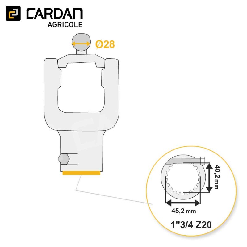 Machoire grand angle Bondioli SFT S6 5110G3861 | HMASFTS610/BC-BONDIOLI Référence HMASFTS610/BC-BONDIOLI Disponible sous 24/48h Caractéristiques Croisillon : 27x100 mmSortie : 1-3/4 20 canneluresVerrouillage : Boulon Conique Correspondance origine : 5110G3861 Descriptif produit Machoire d'extrémité de grand angle d'origine Bondioli montée sur la série SFT S6. Elle peut aller côté tracteur ou côté machine. Elle se monte sur... En savoir plus Fabricant Réserver du stock × Vous souhaitez vous assurer de la disponibilité d’un produit ? Notre service de réservation de stock est fait pour vous ! Dès réception de votre demande, nous vous envoyons un tarif de réservation accompagné d’un devis à régler en ligne. Une fois le paiement validé, le stock vous est attribué et réservé pour votre commande.Livraison possible sous 24h. Ce service est payant et nécessite un compte pro. Si vous n’avez pas encore de compte, vous devrez en créer un pour finaliser votre demande et régler le devis de réservation. Connexion requise Connectez-vous ou créez un compte pour accéder à la réservation de stock Se connecter / Créer un compte Réserver du stock Télécharger les caractéristiques techniques Partagez ce produit Partagez ce produit 372,22 € TTC / pièce 310,18 € HT Comparer - + Ajouter au panier Sauvegarder ce produit dans ma liste Achat rapide Quantité minimale 1Options de livraison Besoin de conseils ? Rappel gratuit Contactez-nous 01 83 64 42 62 Nom / Prénom * Téléphone * Email * Message * Envoyer * Informations obligatoires Demander un devis Demande de devis × Vous devez être connecté pour demander un devis. Je suis un particulier Je suis un proDéja client ? Se connecter Créer mon compte Créer un compte Étape précédente SIRET Entreprise APE Aucune société pour ce siret L'adresse email de comptabilité est différente de l'adresse email de votre compte client ? Oui Non Email de la comptabilité : Civilité M. Mme Prénom * Nom* Email * Mot de passe * (Cinq caractères minimum) Date de naissance -1 2 3 4 5 6 7 8 9 10 11 12 13 14 15 16 17 18 19 20 21 22 23 24 25 26 27 28 29 30 31 -January February March April May June July August September October November December -2025 2024 2023 2022 2021 2020 2019 2018 2017 2016 2015 2014 2013 2012 2011 2010 2009 2008 2007 2006 2005 2004 2003 2002 2001 2000 1999 1998 1997 1996 1995 1994 1993 1992 1991 1990 1989 1988 1987 1986 1985 1984 1983 1982 1981 1980 1979 1978 1977 1976 1975 1974 1973 1972 1971 1970 1969 1968 1967 1966 1965 1964 1963 1962 1961 1960 1959 1958 1957 1956 1955 1954 1953 1952 1951 1950 1949 1948 1947 1946 1945 1944 1943 1942 1941 1940 1939 1938 1937 1936 1935 1934 1933 1932 1931 1930 1929 1928 1927 1926 1925 1924 1923 1922 1921 1920 1919 1918 1917 1916 1915 1914 1913 1912 1911 1910 1909 1908 1907 1906 1905 1904 1903 1902 1901 1900 Inscrivez-vous à notre newsletter ! Recevez les offres spéciales de nos partenaires ! S'inscrire *Champ obligatoire Vous souhaitez obtenir un devis personnalisé pour ce produit ? Complétez le formulaire ci-dessous et nous vous recontacterons rapidement avec une offre adaptée à vos besoins.Devis gratuit et sans engagement. Quantité souhaitée * Message ou spécifications Envoyer ma demande de devis * Informations obligatoires Description Machoire d'extrémité de grand angle d'origine Bondioli montée sur la série SFT S6. Elle peut aller côté tracteur ou côté machine. Elle se monte sur un croisillon dont les dimensions sont 27x100 mm et sa sortie est en 1-3/4 20 cannelures verrouillage avec un boulon conique. Fiche technique Sortie1"3/4 Z20Croisillon27x100MarqueBONDIOLIRéférence d'origine5110G3861Type de machoireMachoire d'extrémité automatique homocinétiqueVerrouillageBoulon coniqueDiamètre de la boule28