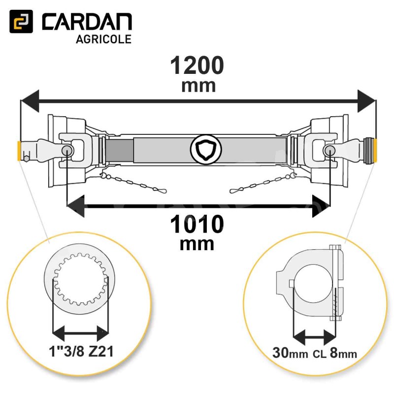 Transmission cardan agricole 16 Cv 1,20 mt Benzi | TO212/MALB23008T-BENZI Référence TO212/MALB23008T-BENZI Disponible sous 24/48h Caractéristiques Puissance 540 tr/min : 16 CvLongueur fermée : 1200 mmSortie tracteur : 1-3/8 Z6 à BillesSortie outil : 30 mm à Boulon Tangeant Cl 8 mmSécurité : Aucune Descriptif produit Transmission agricole standard sans sécurité de longueur fermée 1200 mm. Elle est conçue pour supporter une puissance de 16 cv à 540tr/min et 25 cv... En savoir plus Fabricant Réserver du stock × Vous souhaitez vous assurer de la disponibilité d’un produit ? Notre service de réservation de stock est fait pour vous ! Dès réception de votre demande, nous vous envoyons un tarif de réservation accompagné d’un devis à régler en ligne. Une fois le paiement validé, le stock vous est attribué et réservé pour votre commande.Livraison possible sous 24h. Ce service est payant et nécessite un compte pro. Si vous n’avez pas encore de compte, vous devrez en créer un pour finaliser votre demande et régler le devis de réservation. Connexion requise Connectez-vous ou créez un compte pour accéder à la réservation de stock Se connecter / Créer un compte Réserver du stock Télécharger les caractéristiques techniques Partagez ce produit Partagez ce produit 147,37 € TTC / pièce 122,81 € HT Comparer - + Ajouter au panier Sauvegarder ce produit dans ma liste Achat rapide Quantité minimale 1Options de livraison Besoin de conseils ? Rappel gratuit Contactez-nous 01 83 64 42 62 Nom / Prénom * Téléphone * Email * Message * Envoyer * Informations obligatoires Demander un devis Demande de devis × Vous devez être connecté pour demander un devis. Je suis un particulier Je suis un proDéja client ? Se connecter Créer mon compte Créer un compte Étape précédente SIRET Entreprise APE Aucune société pour ce siret L'adresse email de comptabilité est différente de l'adresse email de votre compte client ? Oui Non Email de la comptabilité : Civilité M. Mme Prénom * Nom* Email * Mot de passe * (Cinq caractères minimum) Date de naissance -1 2 3 4 5 6 7 8 9 10 11 12 13 14 15 16 17 18 19 20 21 22 23 24 25 26 27 28 29 30 31 -January February March April May June July August September October November December -2025 2024 2023 2022 2021 2020 2019 2018 2017 2016 2015 2014 2013 2012 2011 2010 2009 2008 2007 2006 2005 2004 2003 2002 2001 2000 1999 1998 1997 1996 1995 1994 1993 1992 1991 1990 1989 1988 1987 1986 1985 1984 1983 1982 1981 1980 1979 1978 1977 1976 1975 1974 1973 1972 1971 1970 1969 1968 1967 1966 1965 1964 1963 1962 1961 1960 1959 1958 1957 1956 1955 1954 1953 1952 1951 1950 1949 1948 1947 1946 1945 1944 1943 1942 1941 1940 1939 1938 1937 1936 1935 1934 1933 1932 1931 1930 1929 1928 1927 1926 1925 1924 1923 1922 1921 1920 1919 1918 1917 1916 1915 1914 1913 1912 1911 1910 1909 1908 1907 1906 1905 1904 1903 1902 1901 1900 Inscrivez-vous à notre newsletter ! Recevez les offres spéciales de nos partenaires ! S'inscrire *Champ obligatoire Vous souhaitez obtenir un devis personnalisé pour ce produit ? Complétez le formulaire ci-dessous et nous vous recontacterons rapidement avec une offre adaptée à vos besoins.Devis gratuit et sans engagement. Quantité souhaitée * Message ou spécifications Envoyer ma demande de devis * Informations obligatoires Description Transmission agricole standard sans sécurité de longueur fermée 1200 mm. Elle est conçue pour supporter une puissance de 16 cv à 540tr/min et 25 cv à 1000 tr/min. La sortie côté tracteur est en 1-3/8 Z6 verrouillage à billes et la sortie côté outil 30 mm verrouillage à boulon tangeant avec clavette de 8 mm. Elle a un tube de type triangulaire également appelé tube trilobes. Fiche technique Croisillon 22x54 Profil de tube Triangulaire Marque BENZI Puissance de la machine entrainée à 540tr/min 16 Cv Largeur de clavette 8 Sécurité Aucune Type de transmission Standard Puissance de la machine entrainée à 1000tr/min 25 Cv Longueur au milieu des croisillons 1010 Longueur totale fermée 1200 Alésage côté tracteur 1"3/8 Z6 à Billes Alésage coté outil 30 mm à Boulon Tangeant Cl 8 mm Verrouillage coté outil Boulon tangeant