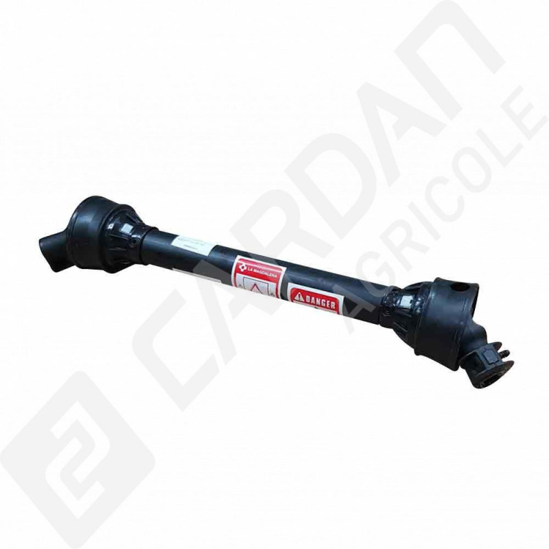 Transmission agricole standard sans sécurité de longueur fermée 800 mm. Elle est conçue pour supporter une puissance de 16 cv à 540tr/min et 25 cv à 1000 tr/min. La sortie côté tracteur est en 1-3/8 Z6 verrouillage à poussoir et la sortie côté outil 1-3/8 Z6 verrouillage à poussoir. Elle a un tube de type triangulaire également appelé tube trilobes.