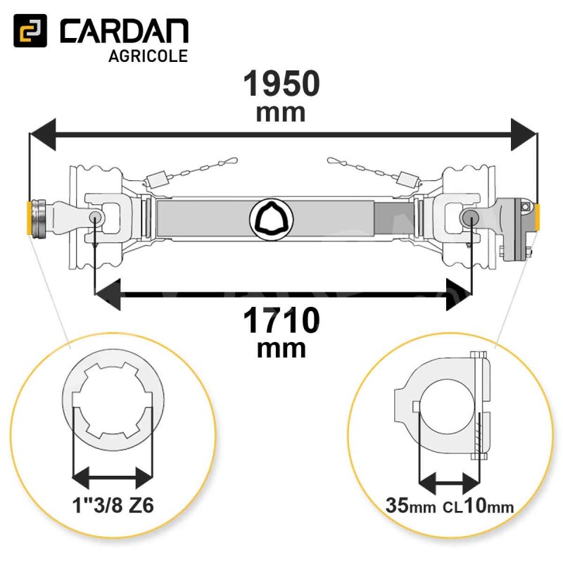 Transmission cardan agricole 64 Cv 1,95 mt Benzi avec limiteur à boulon | TO7195/LB07ALB3510-BENZI Référence TO7195/LB07ALB3510-BENZI Disponible sous 24/48h Caractéristiques Puissance 540 tr/min : 64 CvLongueur fermée : 1950 mmSortie tracteur : 1-3/8 Z6 à BillesSortie outil : 35 mm à Boulon Sécant Cl 10 mmSécurité : Limiteur à boulon Descriptif produit Transmission agricole standard avec un limiteur à boulon de rupture, de longueur fermée 1950 mm. Elle est conçue pour supporter une puissance de 64... En savoir plus Fabricant Réserver du stock × Vous souhaitez vous assurer de la disponibilité d’un produit ? Notre service de réservation de stock est fait pour vous ! Dès réception de votre demande, nous vous envoyons un tarif de réservation accompagné d’un devis à régler en ligne. Une fois le paiement validé, le stock vous est attribué et réservé pour votre commande.Livraison possible sous 24h. Ce service est payant et nécessite un compte pro. Si vous n’avez pas encore de compte, vous devrez en créer un pour finaliser votre demande et régler le devis de réservation. Connexion requise Connectez-vous ou créez un compte pour accéder à la réservation de stock Se connecter / Créer un compte Réserver du stock Télécharger les caractéristiques techniques Partagez ce produit Partagez ce produit 557,75 € TTC / pièce 464,80 € HT Comparer - + Ajouter au panier Sauvegarder ce produit dans ma liste Achat rapide Quantité minimale 1Options de livraison Besoin de conseils ? Rappel gratuit Contactez-nous 01 83 64 42 62 Nom / Prénom * Téléphone * Email * Message * Envoyer * Informations obligatoires Demander un devis Demande de devis × Vous devez être connecté pour demander un devis. Je suis un particulier Je suis un proDéja client ? Se connecter Créer mon compte Créer un compte Étape précédente SIRET Entreprise APE Aucune société pour ce siret L'adresse email de comptabilité est différente de l'adresse email de votre compte client ? Oui Non Email de la comptabilité : Civilité M. Mme Prénom * Nom* Email * Mot de passe * (Cinq caractères minimum) Date de naissance -1 2 3 4 5 6 7 8 9 10 11 12 13 14 15 16 17 18 19 20 21 22 23 24 25 26 27 28 29 30 31 -January February March April May June July August September October November December -2026 2025 2024 2023 2022 2021 2020 2019 2018 2017 2016 2015 2014 2013 2012 2011 2010 2009 2008 2007 2006 2005 2004 2003 2002 2001 2000 1999 1998 1997 1996 1995 1994 1993 1992 1991 1990 1989 1988 1987 1986 1985 1984 1983 1982 1981 1980 1979 1978 1977 1976 1975 1974 1973 1972 1971 1970 1969 1968 1967 1966 1965 1964 1963 1962 1961 1960 1959 1958 1957 1956 1955 1954 1953 1952 1951 1950 1949 1948 1947 1946 1945 1944 1943 1942 1941 1940 1939 1938 1937 1936 1935 1934 1933 1932 1931 1930 1929 1928 1927 1926 1925 1924 1923 1922 1921 1920 1919 1918 1917 1916 1915 1914 1913 1912 1911 1910 1909 1908 1907 1906 1905 1904 1903 1902 1901 1900 Inscrivez-vous à notre newsletter ! Recevez les offres spéciales de nos partenaires ! S'inscrire *Champ obligatoire Vous souhaitez obtenir un devis personnalisé pour ce produit ? Complétez le formulaire ci-dessous et nous vous recontacterons rapidement avec une offre adaptée à vos besoins.Devis gratuit et sans engagement. Quantité souhaitée * Message ou spécifications Envoyer ma demande de devis * Informations obligatoires Description Transmission agricole standard avec un limiteur à boulon de rupture, de longueur fermée 1950 mm. Elle est conçue pour supporter une puissance de 64 cv à 540tr/min et 100 cv à 1000 tr/min. La sortie côté tracteur est en 1-3/8 Z6 verrouillage à billes et la sortie côté outil (sécurité) en diamètre 35 mm verrouillage à boulon sécant avec clavette de 10 mm. Elle a un tube de type triangulaire également appelé tube trilobes. Fiche technique Croisillon30,2x92Profil de tubeTriangulaireMarqueBENZICouple maximum (Nm)2500Puissance de la machine entrainée à 540tr/min64 CvLargeur de clavette10Boulon10x55SécuritéLimiteur à boulonType de transmissionStandardPuissance de la machine entrainée à 1000tr/min100 CvLongueur au milieu des croisillons1710Longueur totale fermée1950Alésage côté tracteur1"3/8 Z6 à BillesAlésage coté outil35 mm à Boulon Sécant Cl 10 mmVerrouillage coté outilBoulon sécant