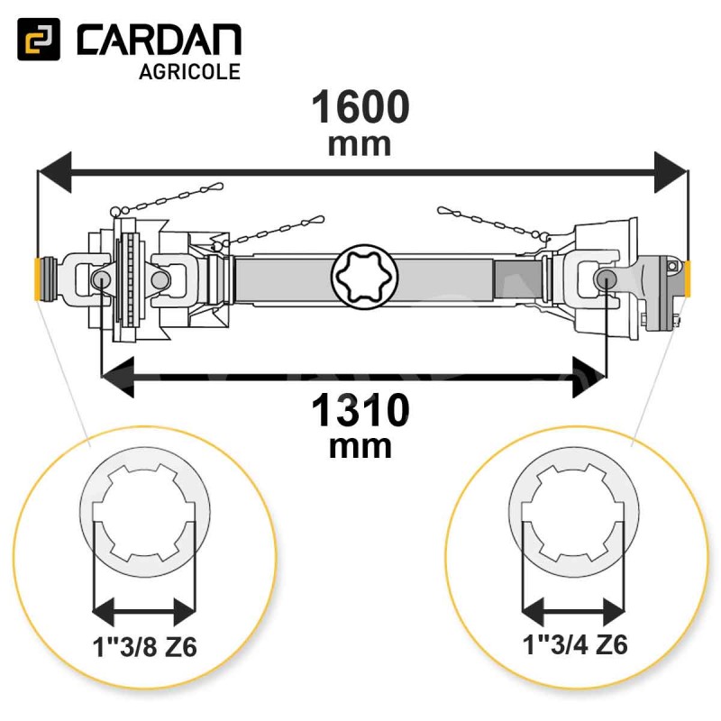 Transmission cardan agricole grand angle 90 Cv 1,60 mt Benzi avec limiteur à boulon | TO2016/HJEE31/LB209-BENZI Référence TO2016/HJEE31/LB209-BENZI Disponible sous 24/48h Caractéristiques Puissance 540 tr/min : 90 CvLongueur fermée : 1600 mmSortie tracteur : 1-3/8 Z6 à BillesSortie outil : 1-3/4 Z6 à PoussoirSécurité : Limiteur à boulon Descriptif produit Transmission agricole avec un grand angle 80° et un limiteur à boulon de rupture, de longueur fermée 1600 mm. Elle est conçue pour supporter une pu... En savoir plus Fabricant Réserver du stock × Vous souhaitez vous assurer de la disponibilité d’un produit ? Notre service de réservation de stock est fait pour vous ! Dès réception de votre demande, nous vous envoyons un tarif de réservation accompagné d’un devis à régler en ligne. Une fois le paiement validé, le stock vous est attribué et réservé pour votre commande.Livraison possible sous 24h. Ce service est payant et nécessite un compte pro. Si vous n’avez pas encore de compte, vous devrez en créer un pour finaliser votre demande et régler le devis de réservation. Connexion requise Connectez-vous ou créez un compte pour accéder à la réservation de stock Se connecter / Créer un compte Réserver du stock Télécharger les caractéristiques techniques Partagez ce produit Partagez ce produit 1 437,01 € TTC / pièce 1 197,51 € HT Comparer - + Ajouter au panier Sauvegarder ce produit dans ma liste Achat rapide Quantité minimale 1Options de livraison Besoin de conseils ? Rappel gratuit Contactez-nous 01 83 64 42 62 Nom / Prénom * Téléphone * Email * Message * Envoyer * Informations obligatoires Demander un devis Demande de devis × Vous devez être connecté pour demander un devis. Je suis un particulier Je suis un proDéja client ? Se connecter Créer mon compte Créer un compte Étape précédente SIRET Entreprise APE Aucune société pour ce siret L'adresse email de comptabilité est différente de l'adresse email de votre compte client ? Oui Non Email de la comptabilité : Civilité M. Mme Prénom * Nom* Email * Mot de passe * (Cinq caractères minimum) Date de naissance -1 2 3 4 5 6 7 8 9 10 11 12 13 14 15 16 17 18 19 20 21 22 23 24 25 26 27 28 29 30 31 -January February March April May June July August September October November December -2026 2025 2024 2023 2022 2021 2020 2019 2018 2017 2016 2015 2014 2013 2012 2011 2010 2009 2008 2007 2006 2005 2004 2003 2002 2001 2000 1999 1998 1997 1996 1995 1994 1993 1992 1991 1990 1989 1988 1987 1986 1985 1984 1983 1982 1981 1980 1979 1978 1977 1976 1975 1974 1973 1972 1971 1970 1969 1968 1967 1966 1965 1964 1963 1962 1961 1960 1959 1958 1957 1956 1955 1954 1953 1952 1951 1950 1949 1948 1947 1946 1945 1944 1943 1942 1941 1940 1939 1938 1937 1936 1935 1934 1933 1932 1931 1930 1929 1928 1927 1926 1925 1924 1923 1922 1921 1920 1919 1918 1917 1916 1915 1914 1913 1912 1911 1910 1909 1908 1907 1906 1905 1904 1903 1902 1901 1900 Inscrivez-vous à notre newsletter ! Recevez les offres spéciales de nos partenaires ! S'inscrire *Champ obligatoire Vous souhaitez obtenir un devis personnalisé pour ce produit ? Complétez le formulaire ci-dessous et nous vous recontacterons rapidement avec une offre adaptée à vos besoins.Devis gratuit et sans engagement. Quantité souhaitée * Message ou spécifications Envoyer ma demande de devis * Informations obligatoires Description Transmission agricole avec un grand angle 80° et un limiteur à boulon de rupture, de longueur fermée 1600 mm. Elle est conçue pour supporter une puissance de 90 cv à 540tr/min et 139 cv à 1000 tr/min. La sortie côté tracteur est en 1-3/8 Z6 verrouillage à billes et la sortie côté outil (sécurité) 1-3/4 Z6 verrouillage à poussoir. Elle a un tube de type étoile. Fiche technique Croisillon36x89 - 32x106/110Profil de tubeEtoileMarqueBENZICouple maximum (Nm)2920Puissance de la machine entrainée à 540tr/min90 CvBoulon10x60SécuritéLimiteur à boulonType de transmissionUn joint homocinétiquePuissance de la machine entrainée à 1000tr/min139 CvLongueur au milieu des croisillons1310Longueur totale fermée1600Alésage côté tracteur1"3/8 Z6 à BillesAlésage coté outil1"3/4 Z6 à PoussoirVerrouillage coté outilPoussoir