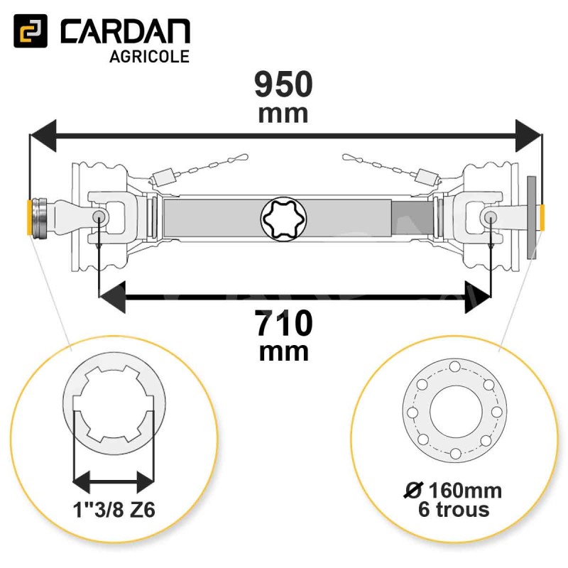Transmission cardan agricole 90 Cv 0,95 mt Walterscheid avec machoire plateau | TO2095/MP160-6-WALTERSCHEID Référence TO2095/MP160-6-WALTERSCHEID Disponible sous 24/48h Caractéristiques Puissance 540 tr/min : 90 CvLongueur fermée : 950 mmSortie tracteur : 1-3/8 Z6 à BillesSortie outil : Aucune D 160 mm - 6 trousSécurité : Aucune Descriptif produit Transmission agricole standard de longueur fermée 950 mm. Elle est conçue pour supporter une puissance de 90 cv à 540tr/min et 139 cv à 1000 tr/min... En savoir plus Fabricant Réserver du stock × Vous souhaitez vous assurer de la disponibilité d’un produit ? Notre service de réservation de stock est fait pour vous ! Dès réception de votre demande, nous vous envoyons un tarif de réservation accompagné d’un devis à régler en ligne. Une fois le paiement validé, le stock vous est attribué et réservé pour votre commande.Livraison possible sous 24h. Ce service est payant et nécessite un compte pro. Si vous n’avez pas encore de compte, vous devrez en créer un pour finaliser votre demande et régler le devis de réservation. Connexion requise Connectez-vous ou créez un compte pour accéder à la réservation de stock Se connecter / Créer un compte Réserver du stock Télécharger les caractéristiques techniques Partagez ce produit Partagez ce produit 632,96 € TTC / pièce 527,47 € HT Comparer - + Ajouter au panier Sauvegarder ce produit dans ma liste Achat rapide Quantité minimale 1Options de livraison Besoin de conseils ? Rappel gratuit Contactez-nous 01 83 64 42 62 Nom / Prénom * Téléphone * Email * Message * Envoyer * Informations obligatoires Demander un devis Demande de devis × Vous devez être connecté pour demander un devis. Je suis un particulier Je suis un proDéja client ? Se connecter Créer mon compte Créer un compte Étape précédente SIRET Entreprise APE Aucune société pour ce siret L'adresse email de comptabilité est différente de l'adresse email de votre compte client ? Oui Non Email de la comptabilité : Civilité M. Mme Prénom * Nom* Email * Mot de passe * (Cinq caractères minimum) Date de naissance -1 2 3 4 5 6 7 8 9 10 11 12 13 14 15 16 17 18 19 20 21 22 23 24 25 26 27 28 29 30 31 -January February March April May June July August September October November December -2026 2025 2024 2023 2022 2021 2020 2019 2018 2017 2016 2015 2014 2013 2012 2011 2010 2009 2008 2007 2006 2005 2004 2003 2002 2001 2000 1999 1998 1997 1996 1995 1994 1993 1992 1991 1990 1989 1988 1987 1986 1985 1984 1983 1982 1981 1980 1979 1978 1977 1976 1975 1974 1973 1972 1971 1970 1969 1968 1967 1966 1965 1964 1963 1962 1961 1960 1959 1958 1957 1956 1955 1954 1953 1952 1951 1950 1949 1948 1947 1946 1945 1944 1943 1942 1941 1940 1939 1938 1937 1936 1935 1934 1933 1932 1931 1930 1929 1928 1927 1926 1925 1924 1923 1922 1921 1920 1919 1918 1917 1916 1915 1914 1913 1912 1911 1910 1909 1908 1907 1906 1905 1904 1903 1902 1901 1900 Inscrivez-vous à notre newsletter ! Recevez les offres spéciales de nos partenaires ! S'inscrire *Champ obligatoire Vous souhaitez obtenir un devis personnalisé pour ce produit ? Complétez le formulaire ci-dessous et nous vous recontacterons rapidement avec une offre adaptée à vos besoins.Devis gratuit et sans engagement. Quantité souhaitée * Message ou spécifications Envoyer ma demande de devis * Informations obligatoires Description Transmission agricole standard de longueur fermée 950 mm. Elle est conçue pour supporter une puissance de 90 cv à 540tr/min et 139 cv à 1000 tr/min. La sortie côté tracteur est en 1-3/8 Z6 verrouillage à billes et la sortie côté outil est une machoire plateau de diamètre extérieur 160 mm, 6 trous de fixation. Elle a un tube de type étoile. Attention le kit vis pour la machoire plateau n'est pas fourni avec, il faut le commander en plus. Fiche technique Croisillon36x89Profil de tubeEtoileMarqueWALTERSCHEIDPuissance de la machine entrainée à 540tr/min90 CvSécuritéMachoire plateauType de transmissionStandardPuissance de la machine entrainée à 1000tr/min139 CvLongueur au milieu des croisillons710Longueur totale fermée950Alésage côté tracteur1"3/8 Z6 à BillesAlésage coté outilMachoire plateau D 160 mm - 6 trousVerrouillage coté outilKit vis (non fournis)